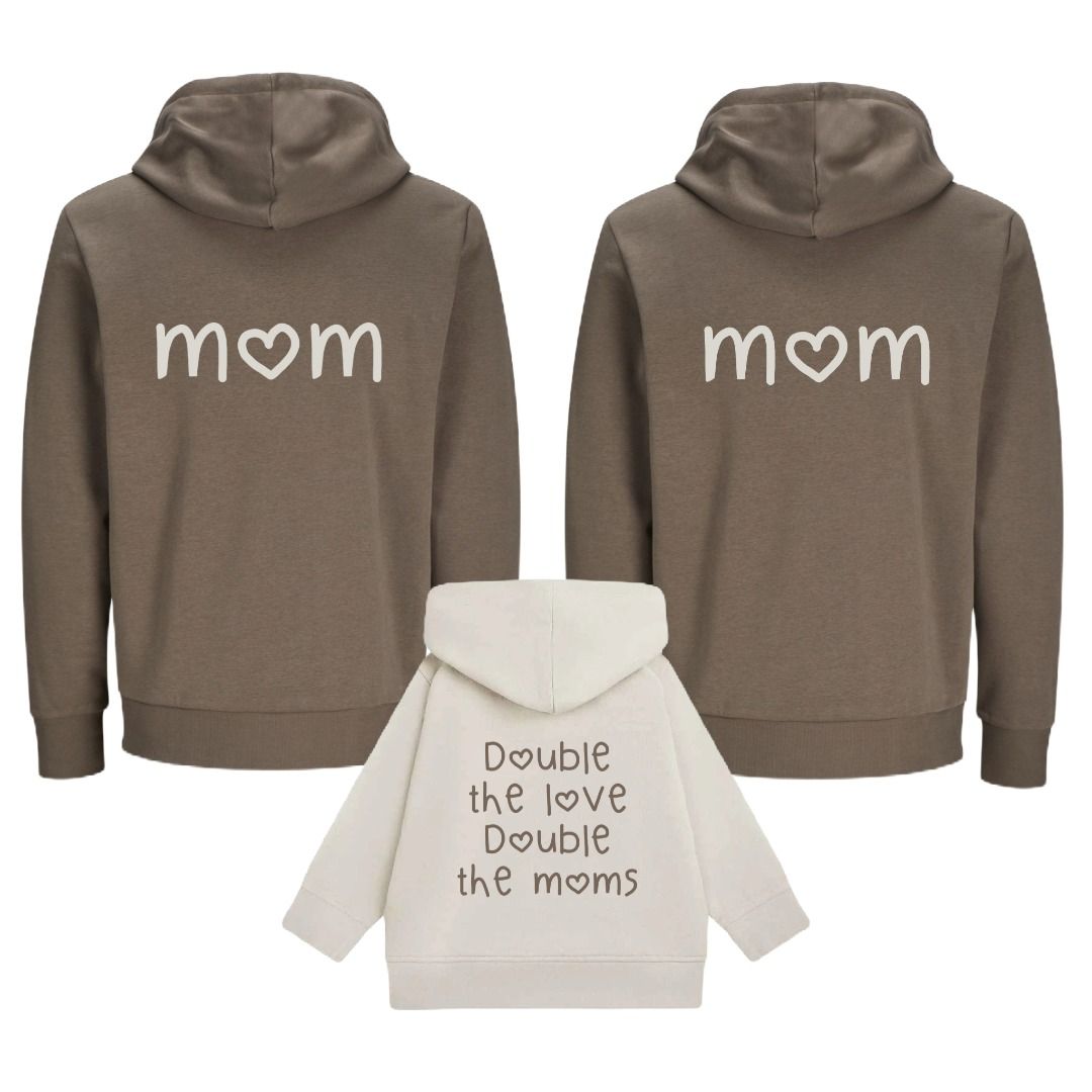 Vol trots delen wij onze collectie matching hoodies voor twee moeders en kind.