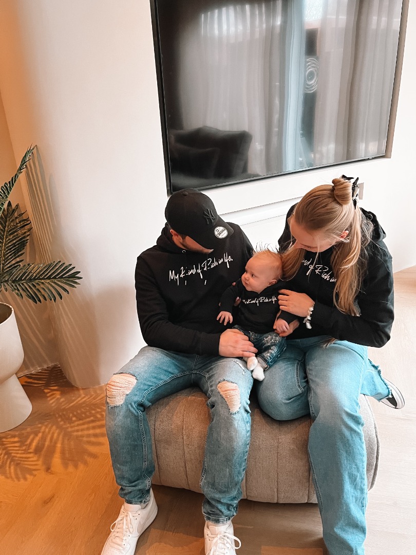 Wij voorzien de Matching familie hoodies - My kind of rich in life van opdrukken die met een hoge druk en warmte op de truien bedrukt worden.