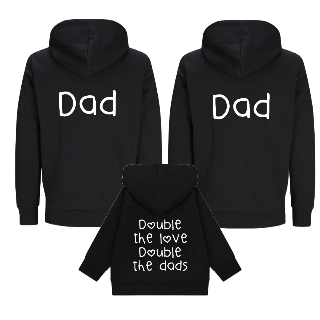 Wij voorzien de Matching hoodies voor twee papa's en kind - Double the dads van opdrukken die met een hoge druk en warmte op de truien bedrukt worden.