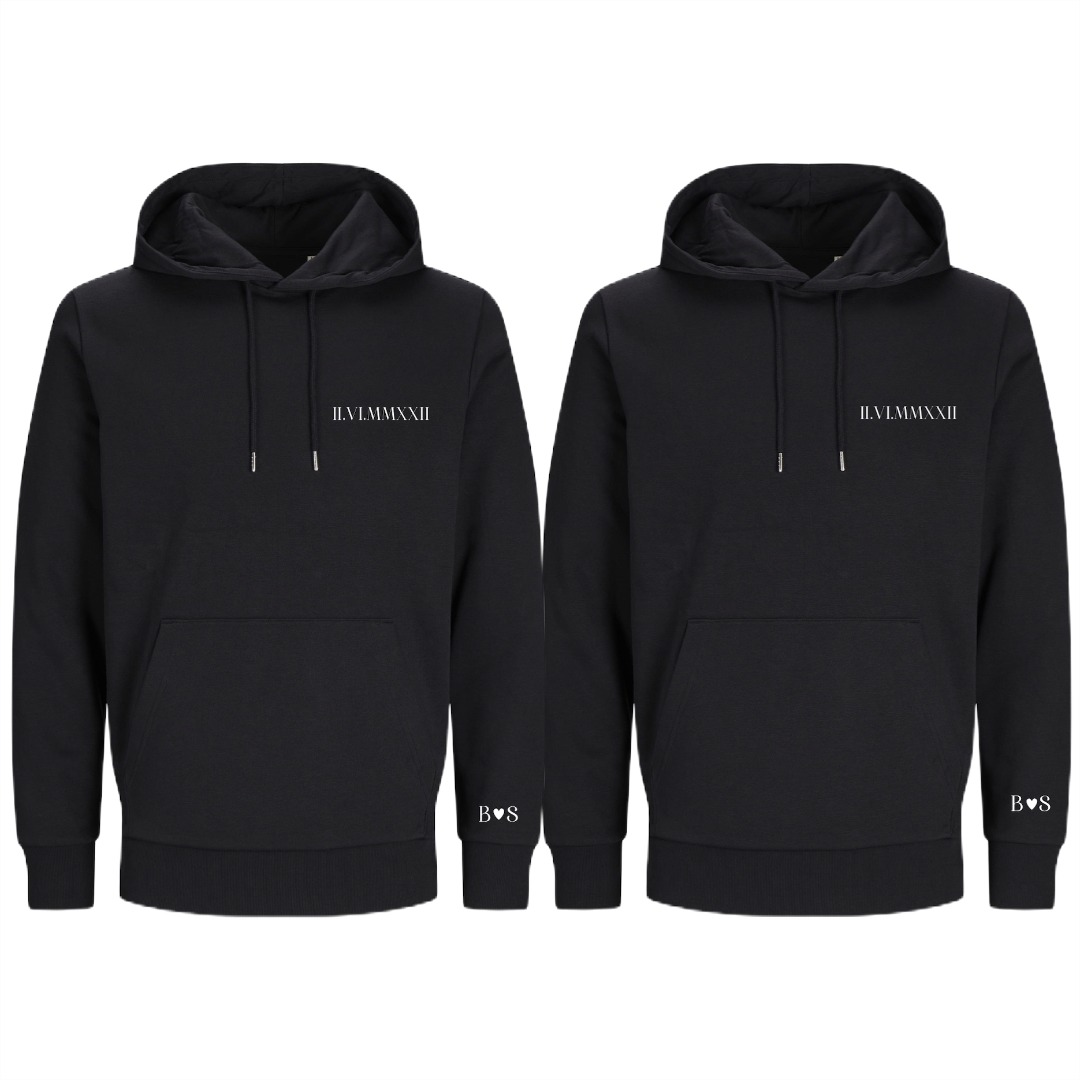 Het is daarom onwijs leuk om deze Matching koppel cadeau hoodies - Datum in romeinse cijfers en voorletters cadeau te geven aan je grote liefde.