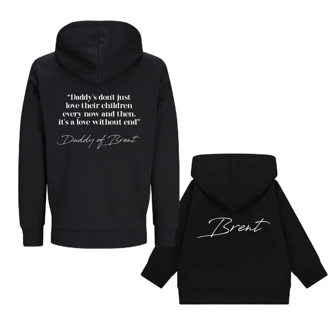 Speciaal voor de liefste en de meest trotse papa die er rond loopt hebben wij dit mega leuke en gepersonaliseerde setje matching hoodies ontworpen voor vader en kind.