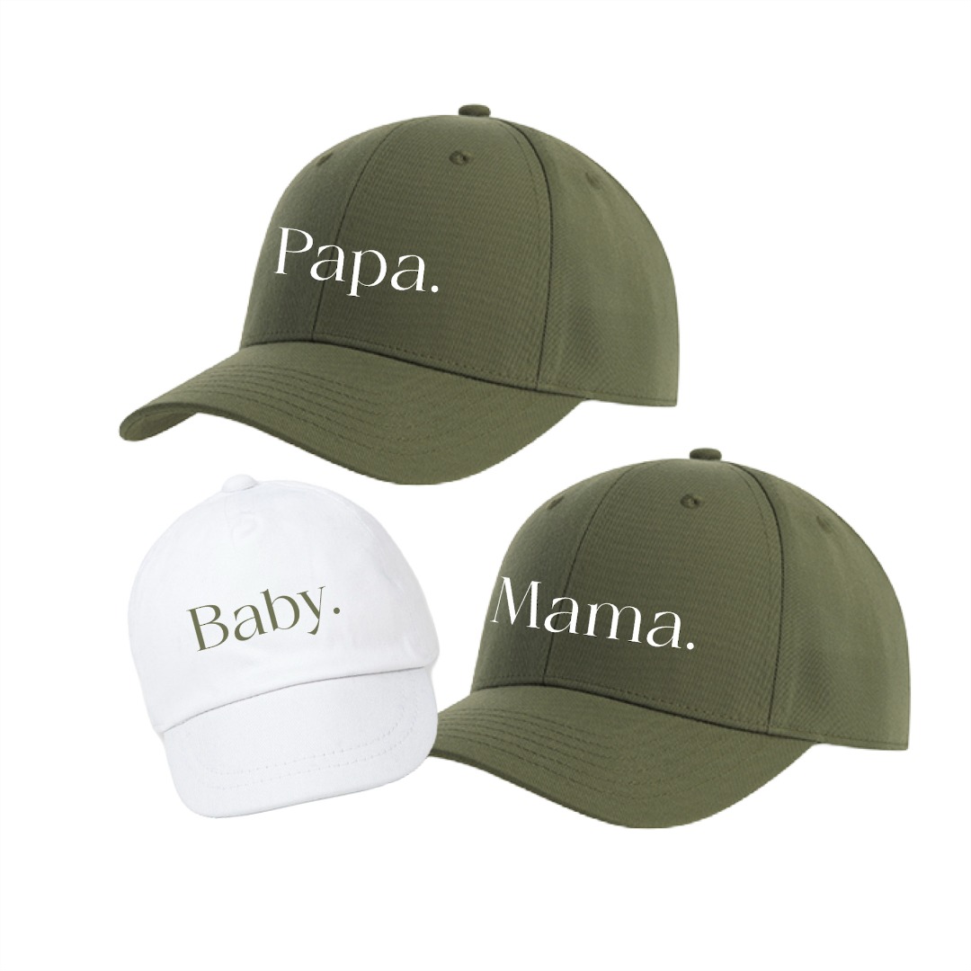 Ga dan voor dit geweldige setje petten die wij speciaal ontworpen hebben voor een papa to be en een mama to be en alvast voor jullie kleine babytje!