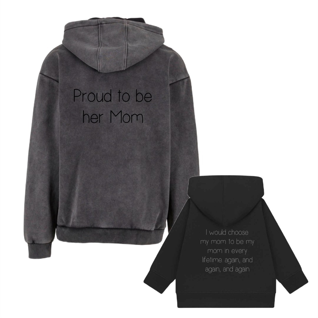 Wij personaliseren de hoodies voor moeder en kind op deze manier heb je daarom een persoonlijk cadeau voor Moederdag.
