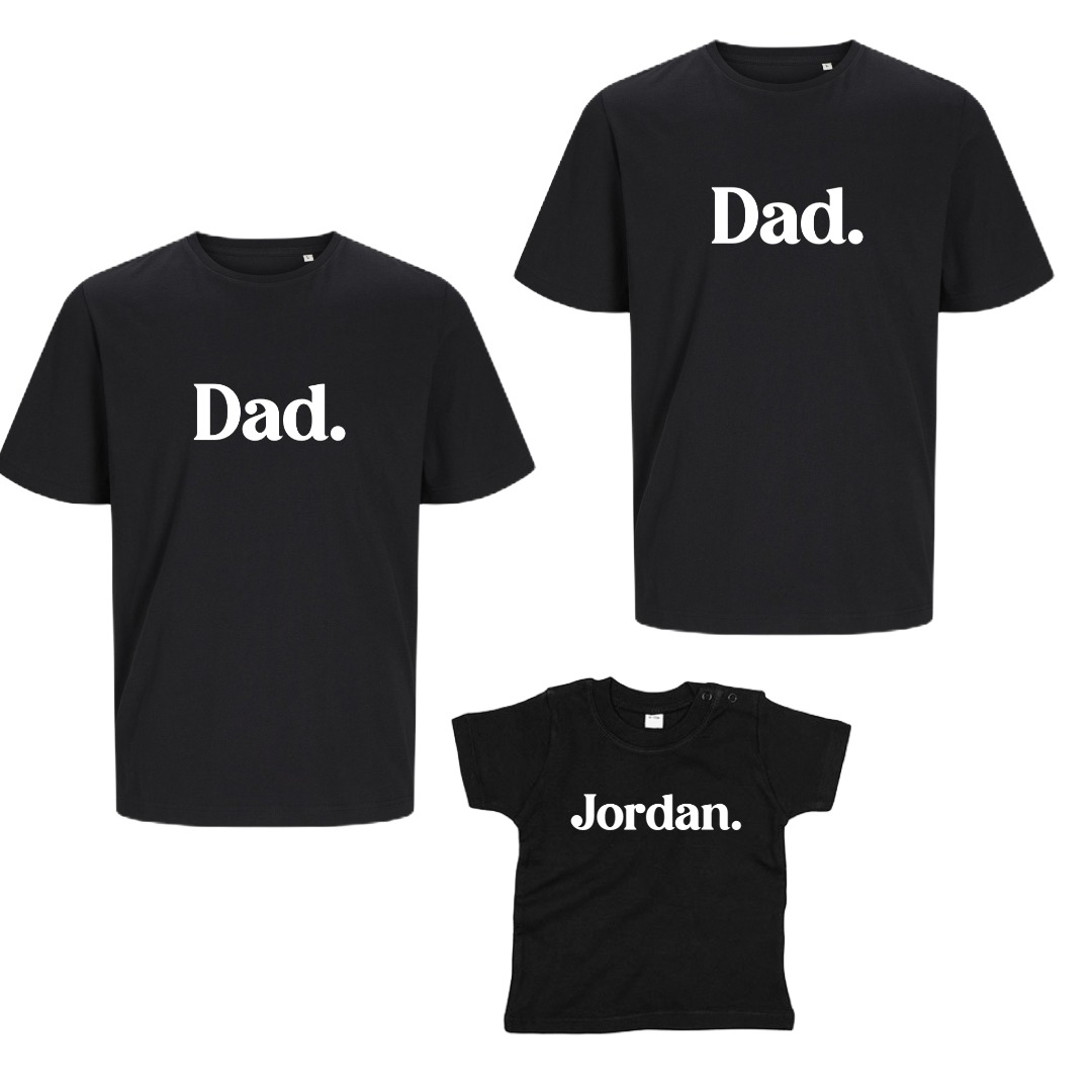 De Matching shirts voor twee vaders en kind - Dad en Kindernaam zijn gemaakt van een prachtige kwaliteit